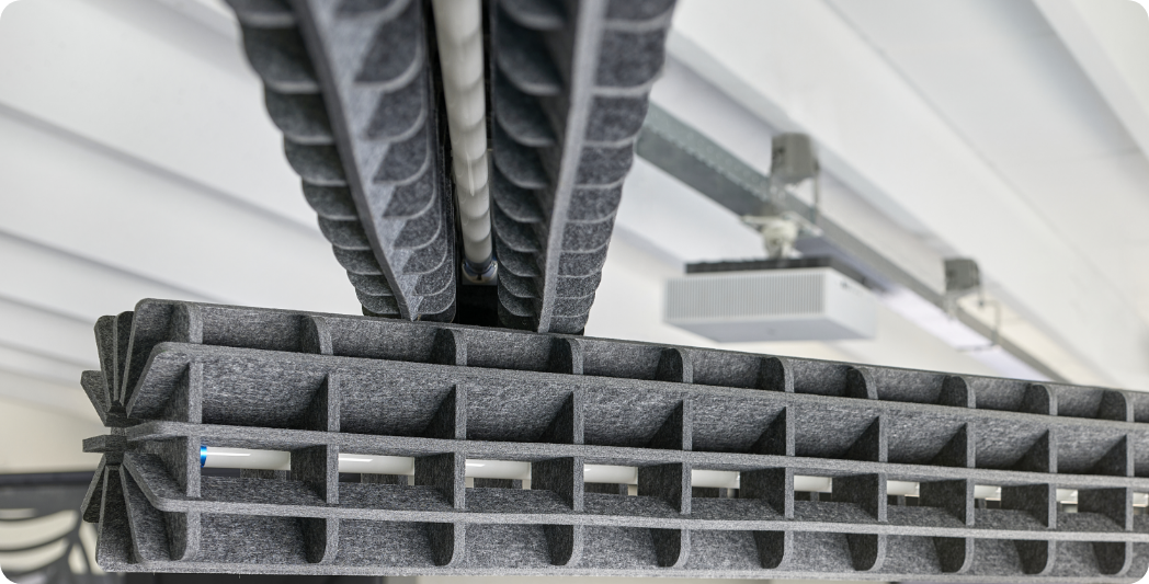 Bright Acoustics denkt mee vanaf de eerste ontwerpfase. We vertalen galm- en nagalmproblemen naar esthetische oplossingen die passen bij het ruimtelijk concept, de indeling en de materiaalkeuzes. Door creativiteit te combineren met technisch inzicht, realiseren we maatwerk dat zowel functioneel als visueel impact maakt.